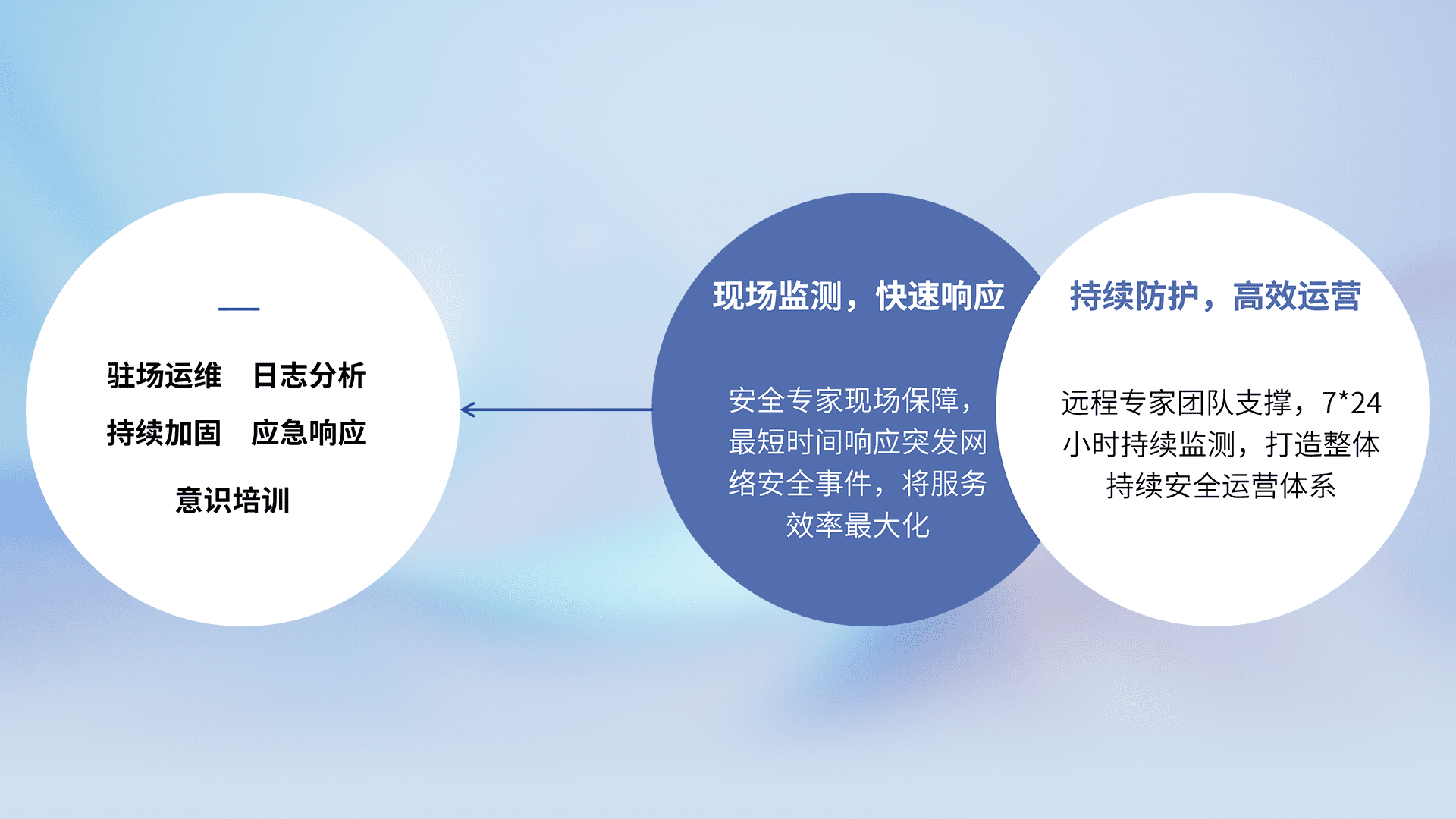 7X24小时持续监测安全事件,保持安全策略有效性,降低资产脆弱性风险,,精准拦截黑客攻击,,,,减少被黑客利用的机会,,,第一时间遏制,,,降低损失。。